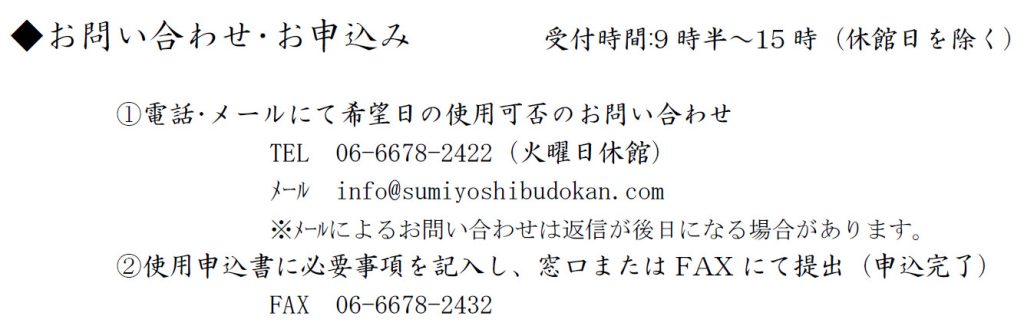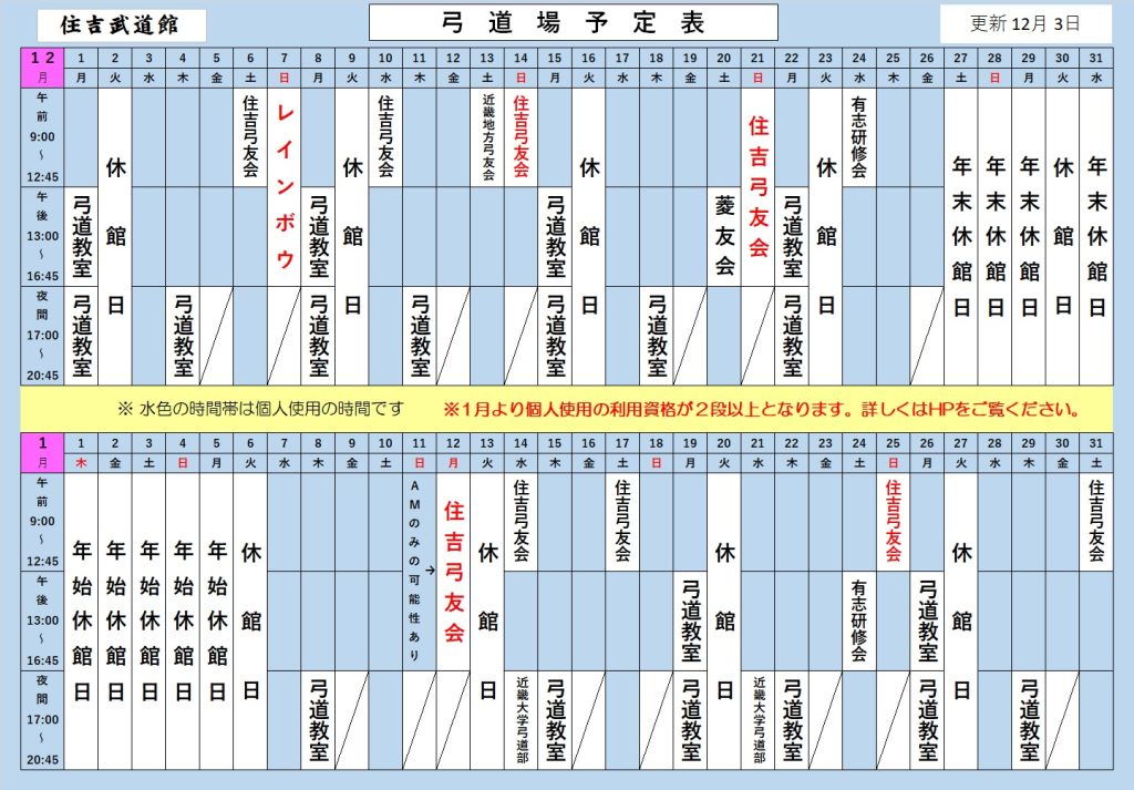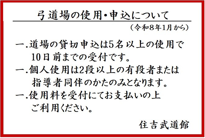 ※弓道場貸切予約は随時変更がありますので、最新版をご確認ください。
