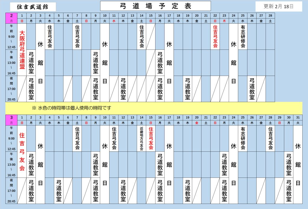 ※弓道場貸切予約は随時変更がありますので、最新版をご確認ください。