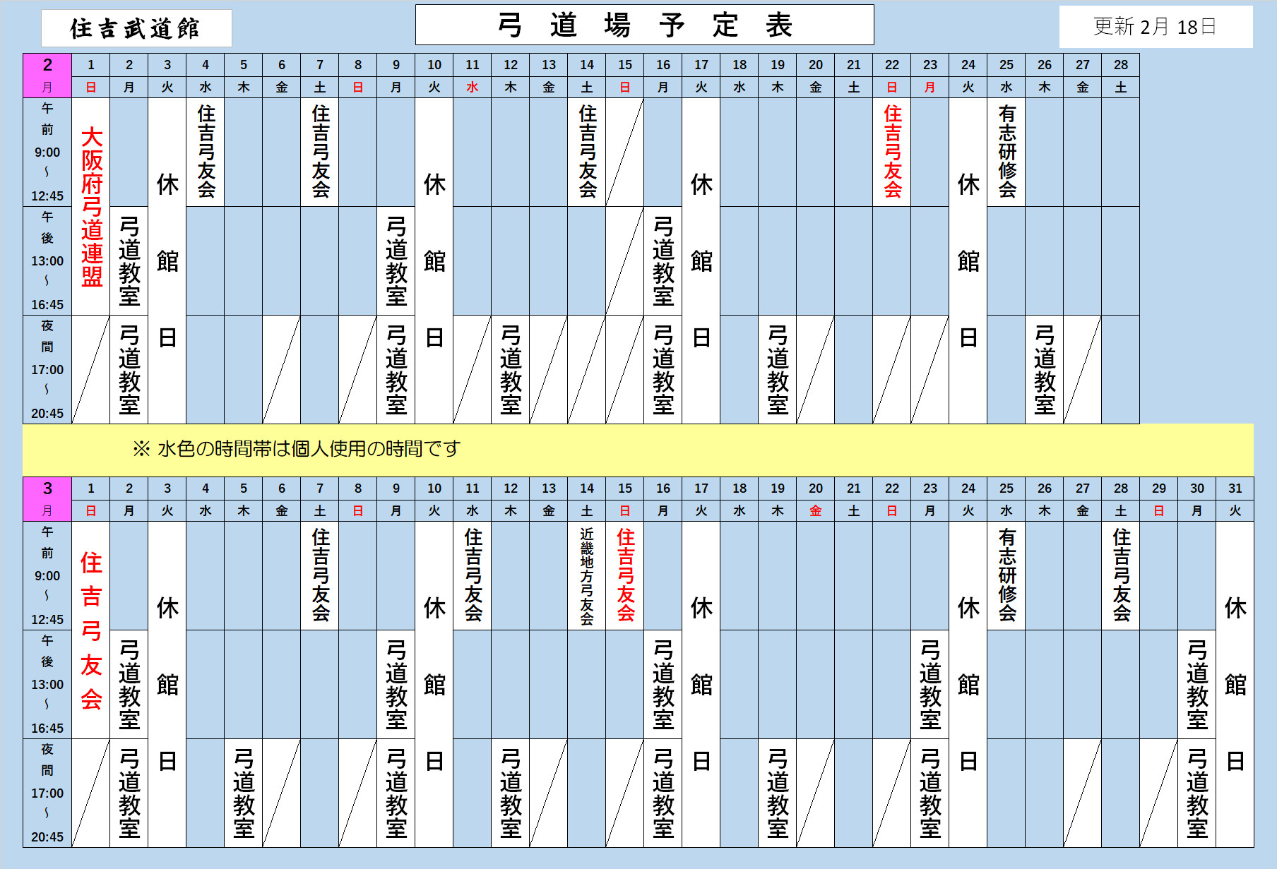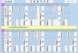 弓道場2月・3月予定表 2/18更新