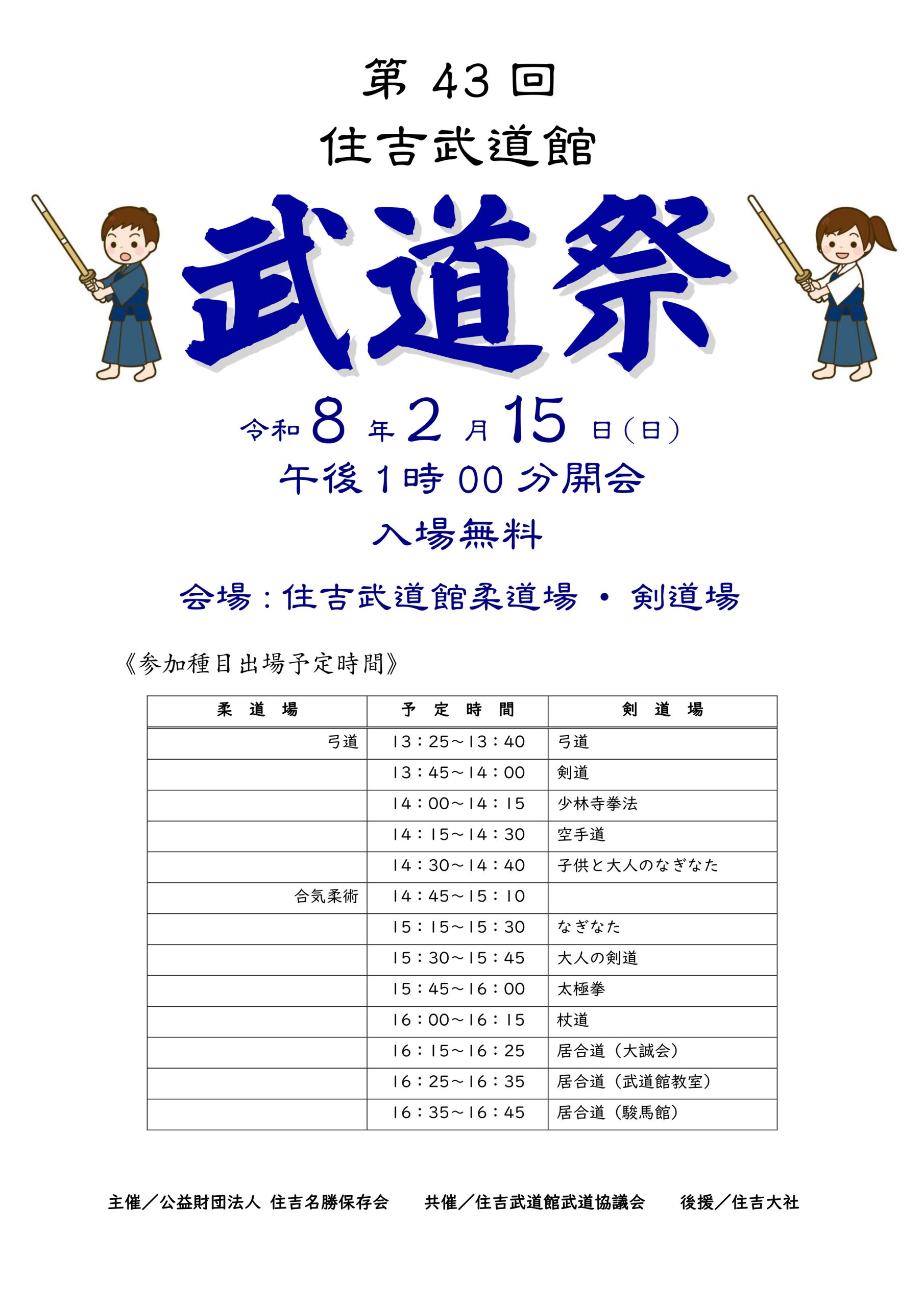 令和8年2月15日㈰ 第43回住吉武道館 武道祭